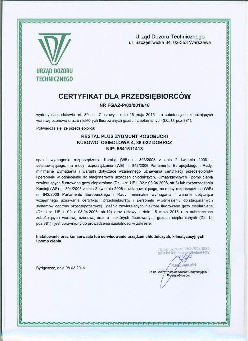 W przypadku urzadzen montowanych przez inna firme po dokonaniu przegladu „zerowego” i wydania oceny podejmujemy sie serwisowania takiej instalacji.